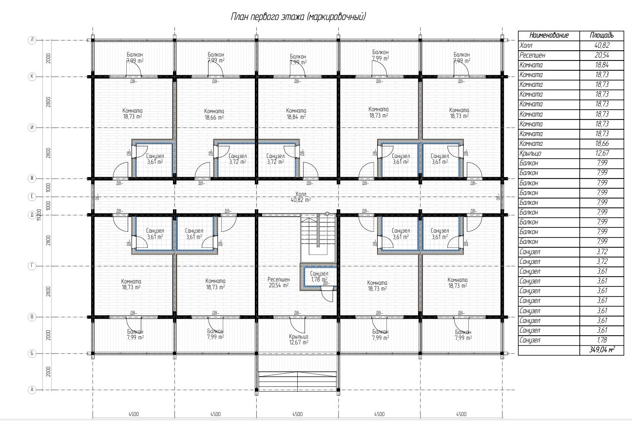 На первом этаже 9 комнат, санузлы, ресепшен. На втором этаже 10 комнат, санузлы, балкон